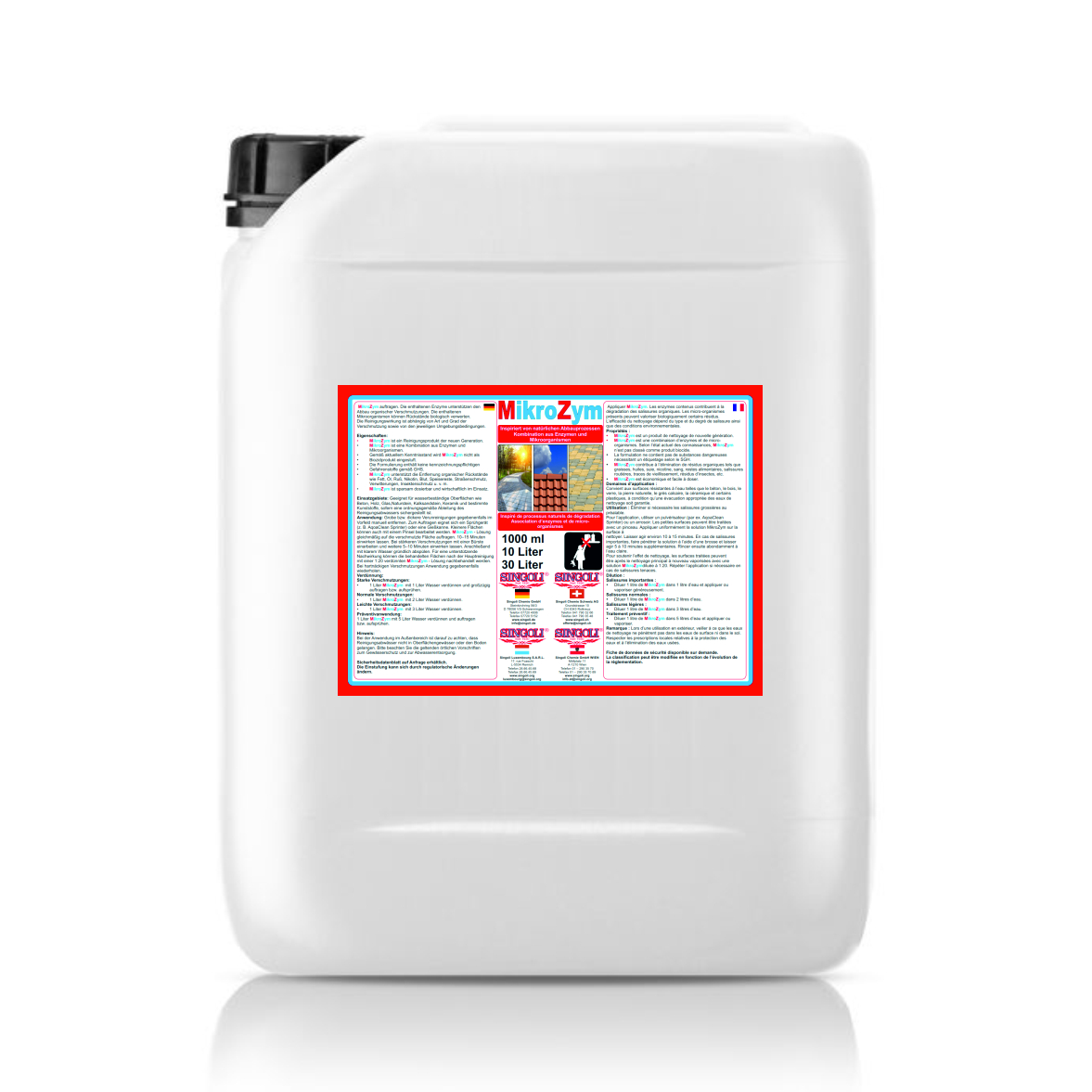 • MikroZym eignet sich für zahlreiche wasserbeständige Oberflächen wie Beton, Holz, Glas, Naturstein, Kalksandstein, Keramik und bestimmte Kunststoffe –