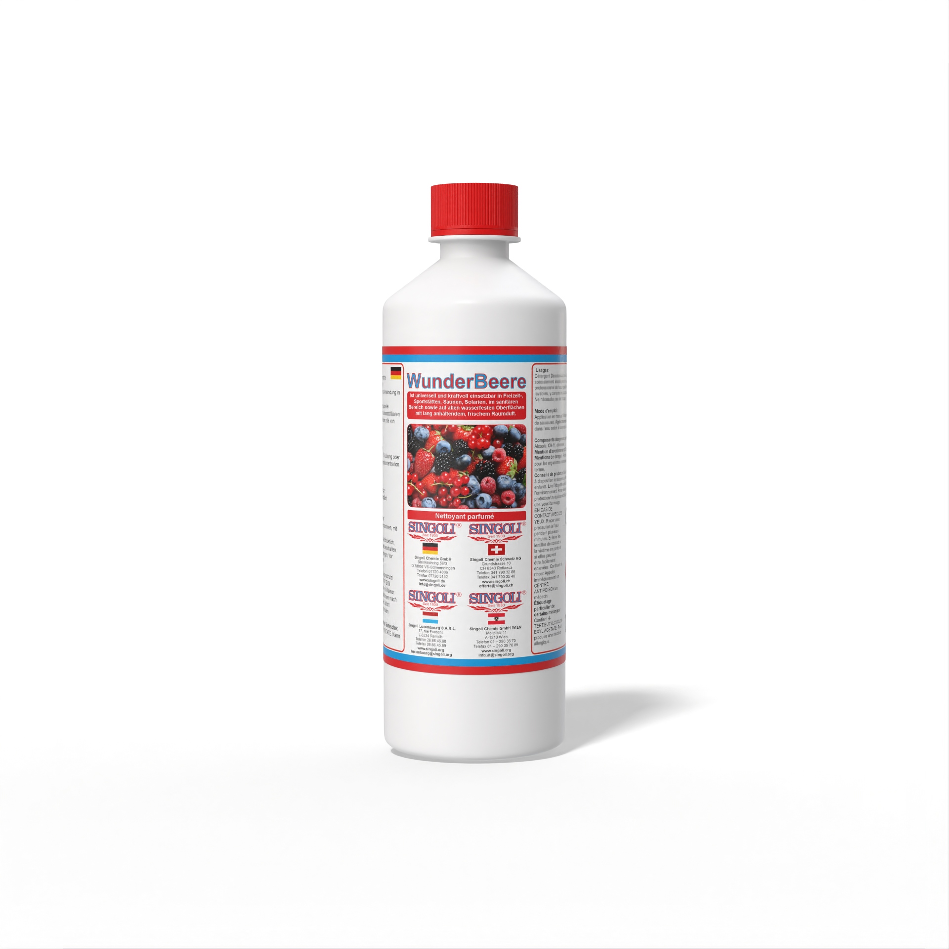 Die Wunderbeere Wischpflege ist ein speziell entwickelter Duftreiniger für die professionelle Reinigung. Sie eignet sich für alle Böden und abwaschbaren Oberflächen, auch für Flächen, die durch eine Emulsion geschützt sind. Durch den neutralen pH-Wert reinigt sie gründlich, ohne Materialien anzugreifen, und hinterlässt einen angenehm frischen Duft, der für eine saubere und einladende Raumatmosphäre sorgt.